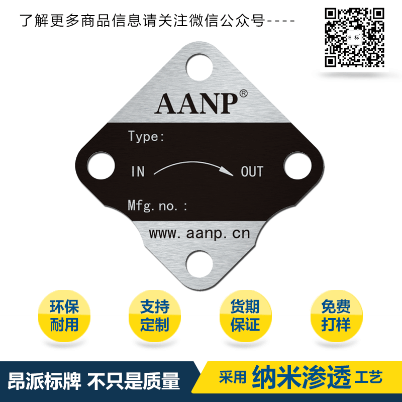 耐紫外線、抗紫外線、耐腐蝕性、長期使用不易褪色,金屬鋁標牌可以取代惡劣的工業使用環境,并且能保持產品